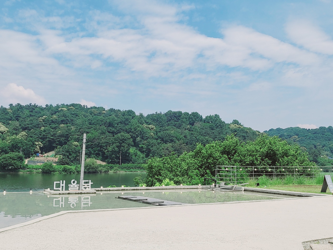 앉아서 찍은 대율담 전경입니다. 대율저수지를 한눈에 볼 수 있습니다. 정말 '와~~'라고 할 수 밖에 없는 모습입니다...ㅠㅠ