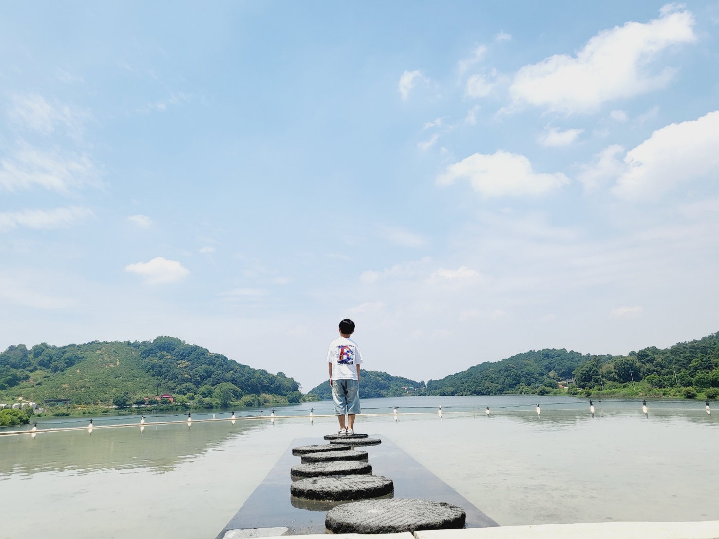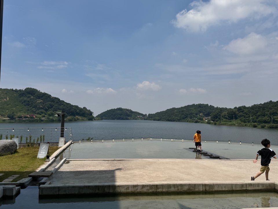 작년 6월에는 더워서 반팔, 반바지를 입고 있는데 저수지 앞이라 바람불어서 그런지 저는 좀 쌀쌀했어요.