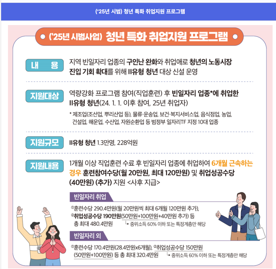 2024년까지 운영되던 이 제도는 2025년 기준 **"국민취업지원제도 Ⅰ·Ⅱ유형"**과 통합되어 운영되고 있으며, 청년층을 위한 특화 서비스는 여전히 존재합니다.
